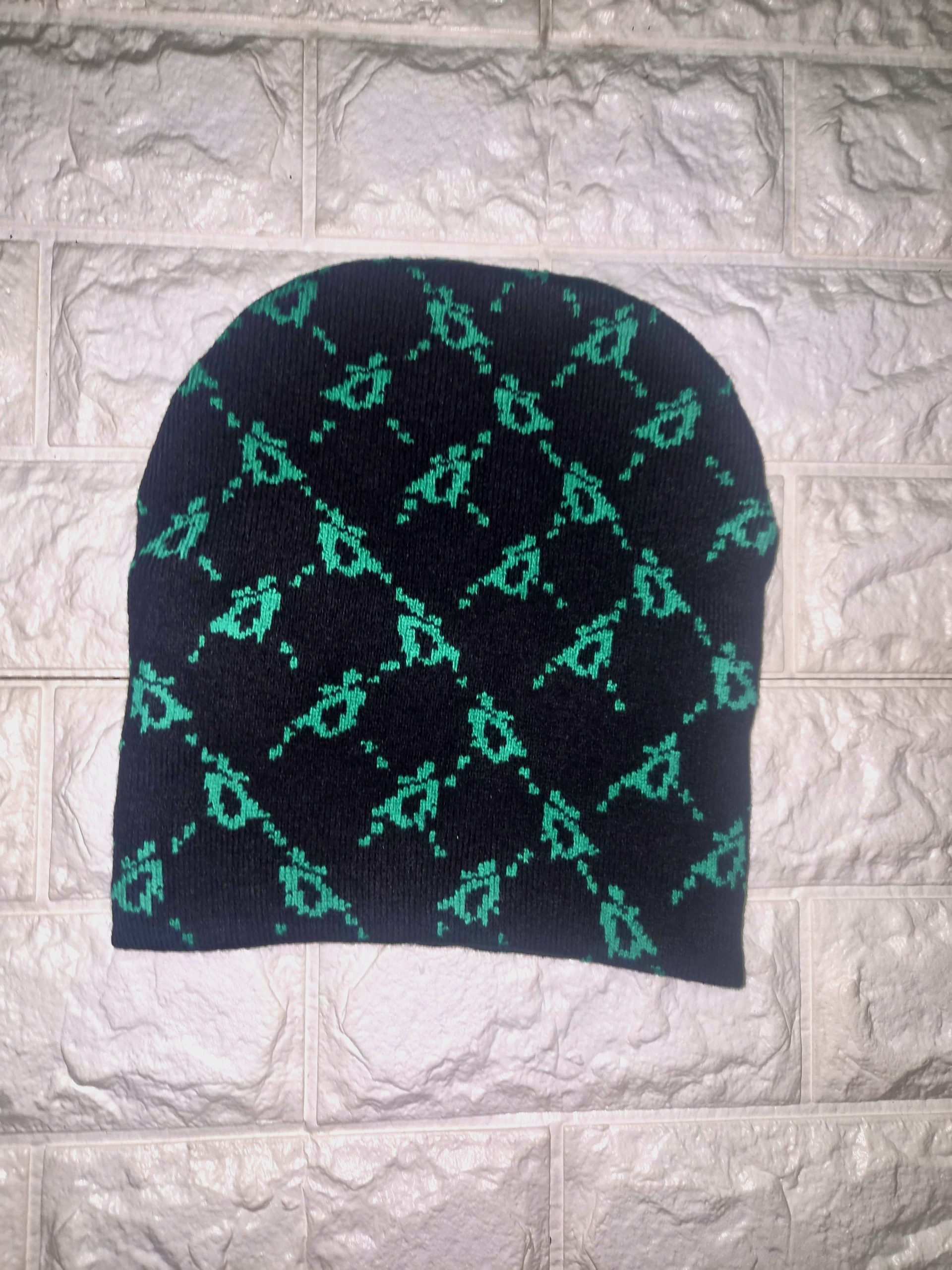 Drippy apple print knit hat (black/green)